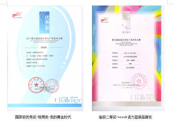 2017年,在第九届全国大学生广告艺术大赛上,我系学生获得国家优秀奖4个;获得省级二等奖6个、省级三等奖4个、省级优秀奖5个。