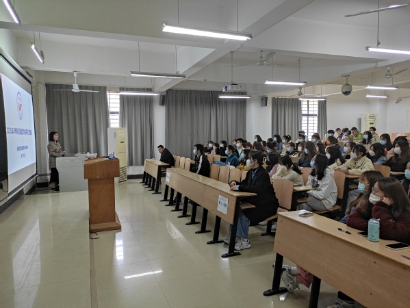 文法新媒体(记者:游博涵 摄影:游博涵)11月9日中午12:30,武汉工商学院文法学院第八期党校培训第四讲在综合楼207展开,由文法学院广告网媒联合学生党支部宣传委员袁萌梓担任主讲人。