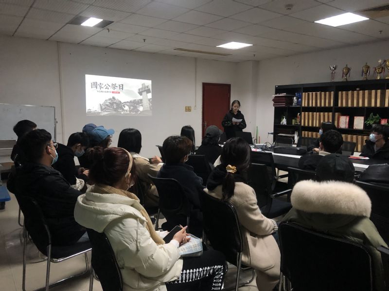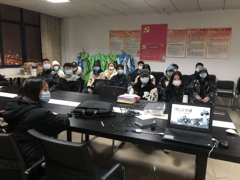 2021年12月13日下午6:00,武汉工商学院文法学院广告与网媒联合党支部在学校1102会议室举行了国家公祭日活动。本活动由叶思倩主持,首先介绍国家公祭日的相关背景,全体同学与老师一同观看了南京大屠杀相关视频,然后集体默哀,最后在冯老师的讲话中结束了这一次活动。