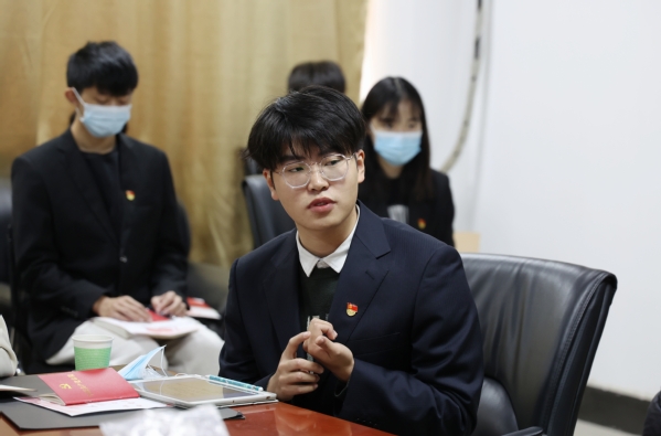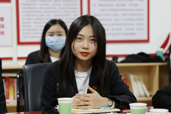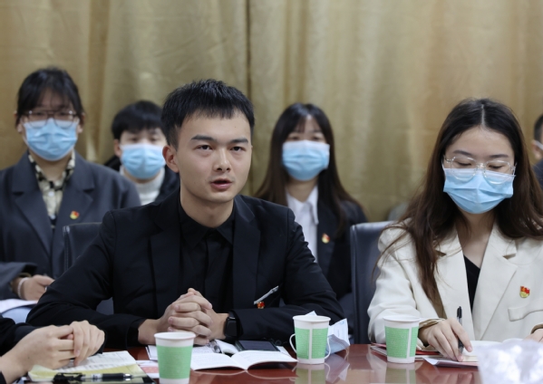 文法学院分团委组织部部长李嘉雯就共青团和共产党的紧密关系发表了感想。在分团委组织期间,李嘉雯负责着智慧团建“党史学习教育”、青年大学习等工作,这些工作将团组织与党组织紧密联系在一起,不断深化青年对中国共产党的认识,引导广大团员青年积极向党组织靠拢。李嘉雯结合自己在宪法宣传日开展活动以及疫情期间身边亲人奋斗在抗疫一线的故事也说道,我们作为一名大学生要把学习放在首位,只有掌握过硬的专业知识才能更好地服务于社会。