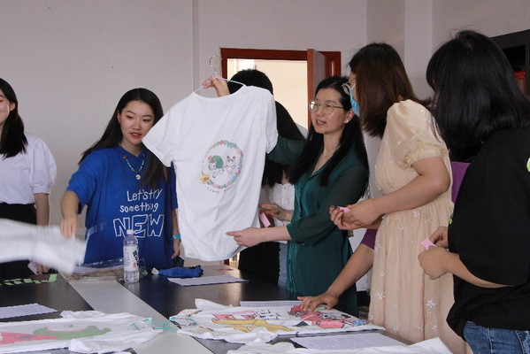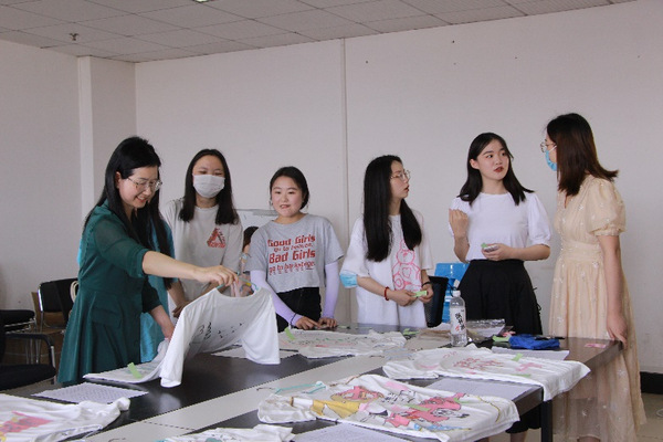 2022年5月5日下午3点,参与本次文化衫制作活动的同学在综合楼1102进行了文化衫展示,并介绍自己的设计理念。文法学院的老师们现场欣赏了同学们的作品并进行了投票。