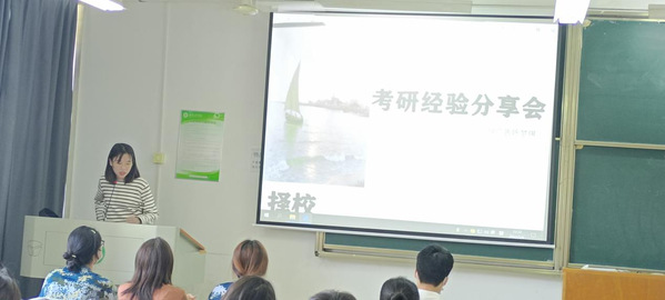 新闻学学生党支部(记者 何艳)5月6日中午12:30,18级广告学专业的陈梦琪学姐于综合楼201室向文法学院第九期党校的五十多名学员分享自己的考研经验及考研背后的故事。