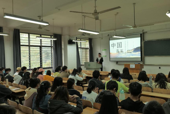 主讲人罗保浩学长在登台前便和大家打了招呼,在正式开始前先与大家寒暄拉近关系:“在座各位都是21级22级的同学吧,希望大家都能顺利结业!”对同学们表达了祝福后,本次党课正式开始。罗保浩学长先做了自我介绍:“大家好,我是来自19新闻的罗保浩,是新闻党支部的组织委员,也是武汉工商学院青年读书会会长、创始人。想必在座的各位同学有一部分也认识我。”轻松、亲切的语调也让在座的学员们放下了紧张。
