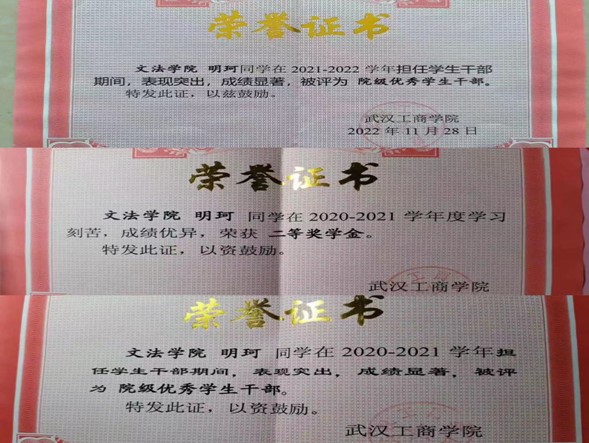 准备考研复试的时候,明珂明天都会在图书馆练习,害怕面对人群的她也会去对着湖边大声练习自我介绍,来提高自我胆量。明珂在校期间还担任着班级的学习委员,她处理自己学习中的困难的同时,还以身作则,主动帮助学习困难的同学解决专业学习上的问题。工作认真负责,学习成绩优异的明珂曾多次获得院级优秀班干部、优秀团员以及三好学生等荣誉。
