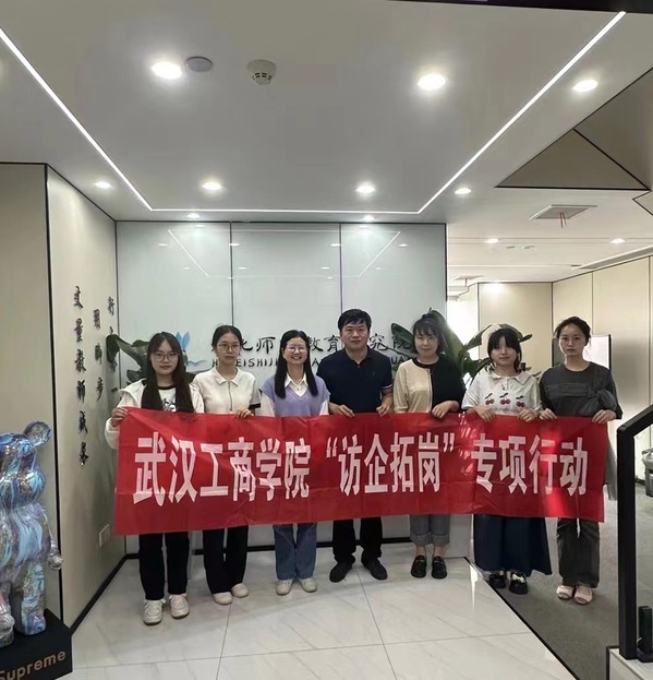 (记者 戴惠中 胡晓青 摄影 田赟)为贯彻落实党的二十大精神,结合教育部关于高校毕业生就业工作的决策部署,积极响应全国高校书记校长访企拓岗促就业专项行动,拓展毕业生就业渠道,提高就业质量,2023年6月5日上午,武汉工商学院文法学院积极开展了“访企拓岗”促就业专项活动,文法学院党总支书记陈敏,文法学院辅导员肖隽,21级广告专业学生田赟,21级新闻专业学生戴惠中、胡晓青,22级新闻专业学生汪鑫瑞,赴湖北师匠教育研究院开展访企拓岗促就业活动。