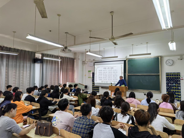 10月13日上午,在武汉工商学院综合教学楼204教室,一堂“院长教学示范公开课”正在进行。讲台上是文法学院院长、教授张金海,台下是23级广告新生、国家一流专业建设点全体老师和学院新入职教师。