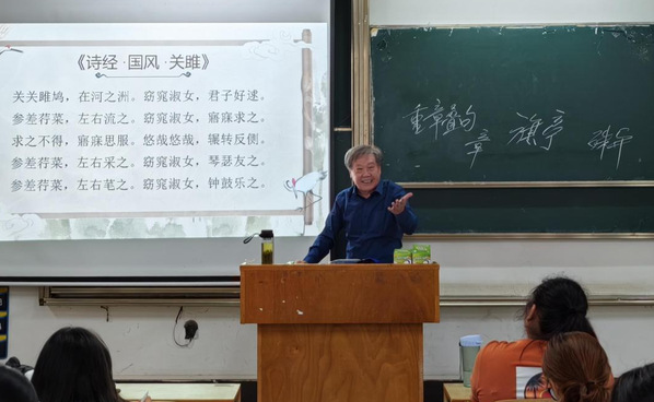 张金海教授带来《古代文学作品选讲》中《诗经小雅》的经典作品赏析。围绕作品的背景和内涵、情感意义、言情达物的技巧等方面,为同学们带来详细讲解,带领大家领略诗经作品的丰富情感和深刻内涵。同时,张教授由浅入深,从重章叠句的技巧讲到文学概念“原型意向”,将历史上多篇诗词名作进行对比解读,启发学生课下主动收集相关的文学理论、思考经典的魅力。