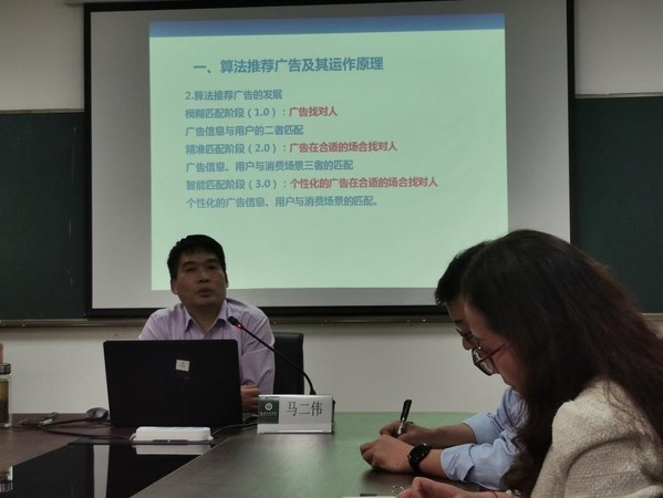 此后,马二伟教授以“算法推荐广告的隐私风险及其治理”为题开启了第二场精彩讲座。马教授先对算法推荐广告及其运作原理进行了详细介绍,而后通过详实的数据向大家说明算法推荐广告运作过程中存在的用户隐私侵犯风险问题引发大家思考,进一步通过梳理国内外相关治理措施及具体案例提出了加强治理体系建设的具体建议和面向用户、互联网平台及监管机构的治理措施。