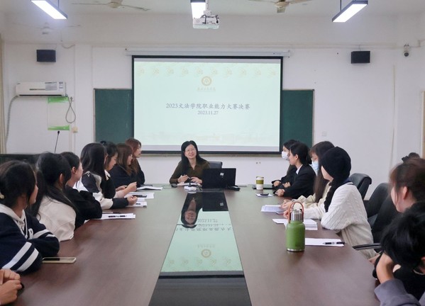 11月27日中午,首届全国大学生职业规划大赛武汉工商学院文法学院决赛在文法楼614举行。学院党总支书记陈敏、分团委书记肖隽、各系教师代表及辅导员担任评委。